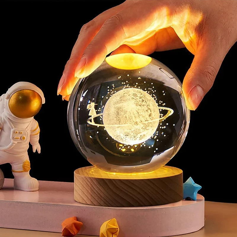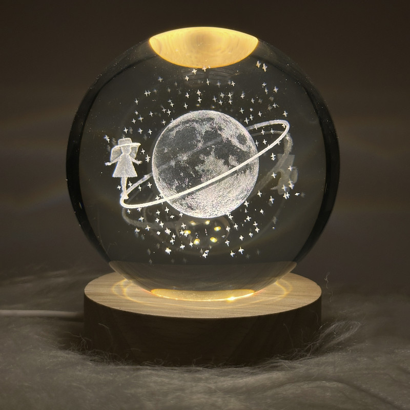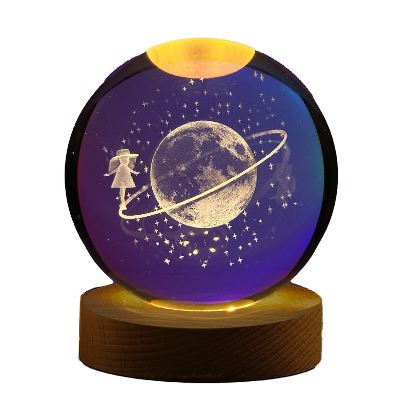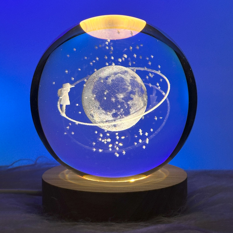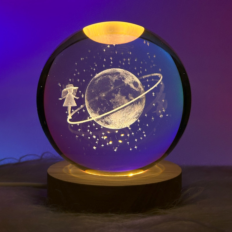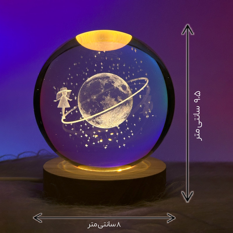 چراغ خواب مدل گوی کریستال سه بعدی طرح ماه و دختر