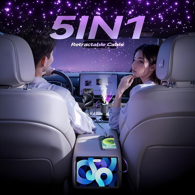 شارژر فندکی Starlight Car Charger 5in1 یک محصول چندمنظوره و کاربردی برای خودرو است که علاوه بر شارژ سریع و ایمن دستگاههای شما، امکانات بیشتری را هم در اختیارتان میگذارد. این دستگاه مجهز به پورت Type-C و USB با قابلیت شارژ سریع (PD 3.0 ) است و میتواند همزمان چند دستگاه را با سرعت بالا شارژ کند. از ویژگیهای خاص این شارژر میتوان به انتشار عطر خوشبوکننده، نورپردازی LED سقف کهکشانی و طراحی مدرن اشاره کرد که علاوه بر کاربردی بودن، جلوه زیبایی به داخل خودرو میدهد. با این محصول، شما در واقع 5 وسیله را در قالب یک دستگاه در اختیار خواهید داشت .