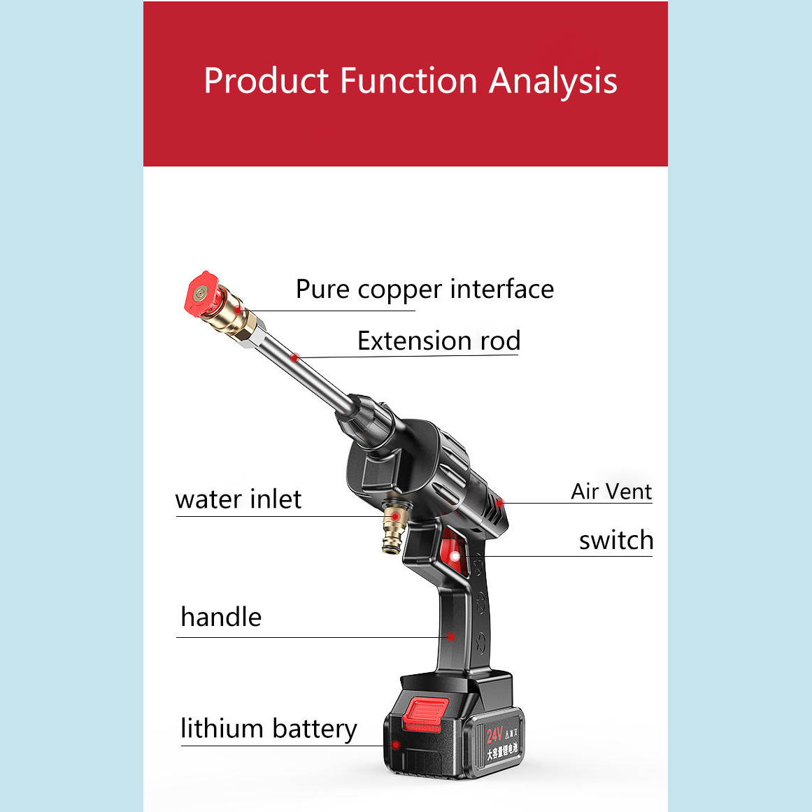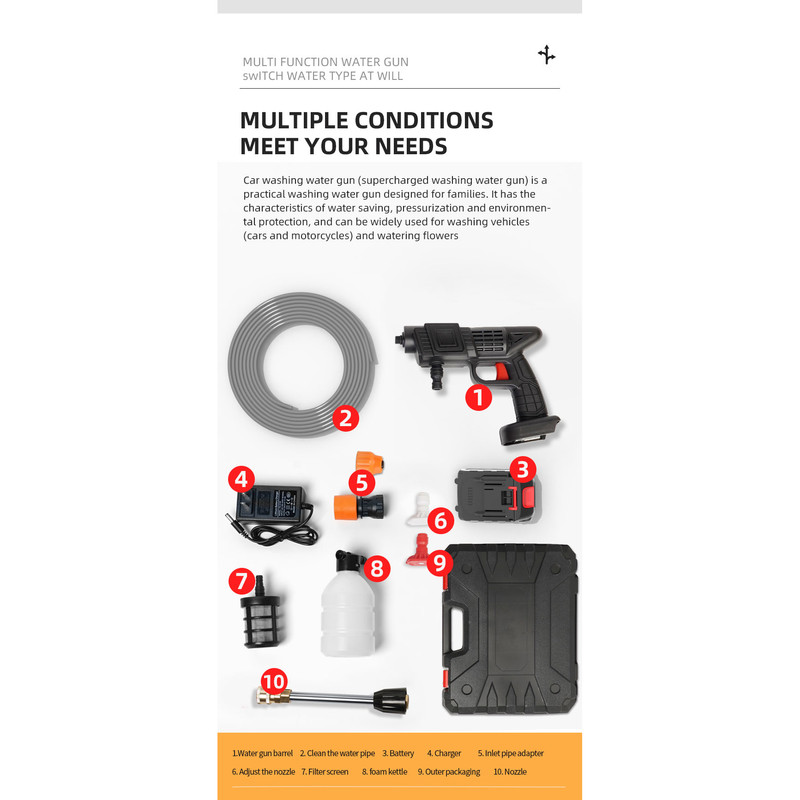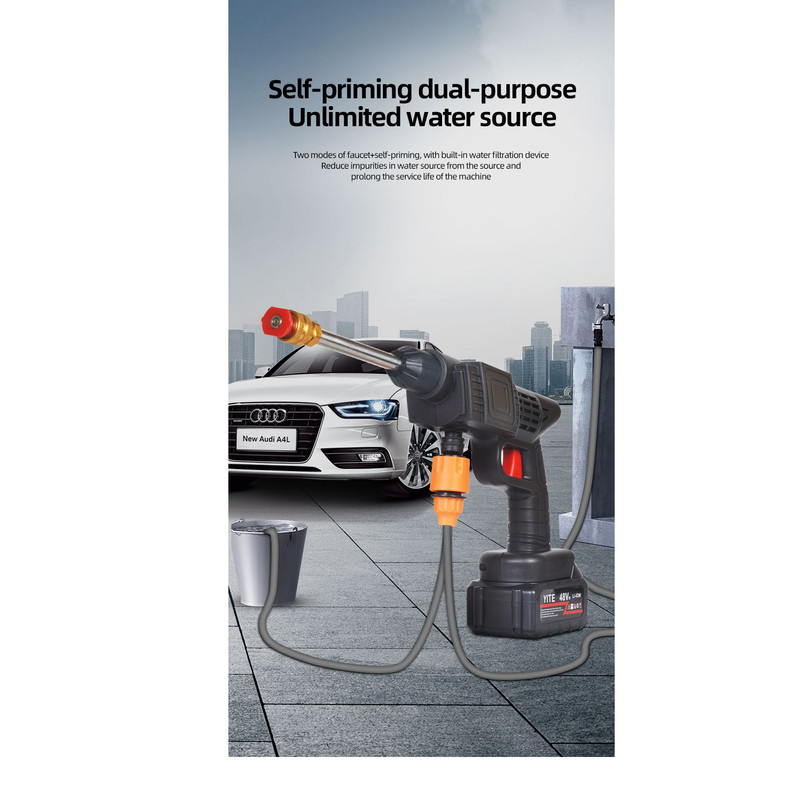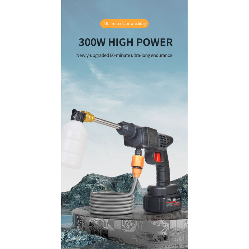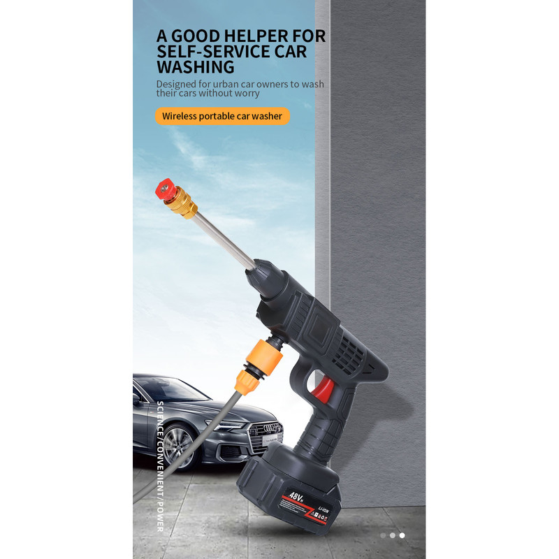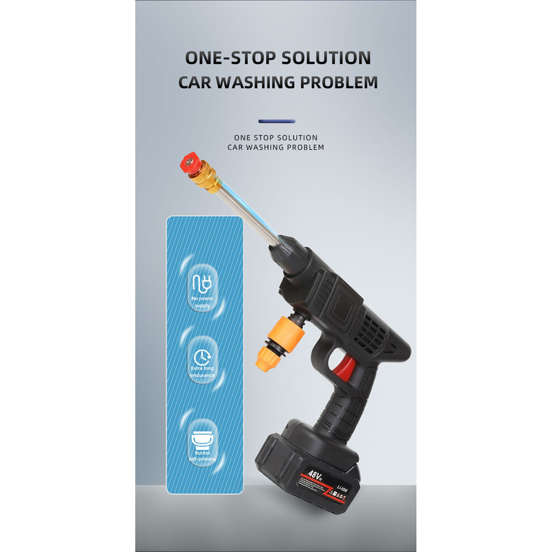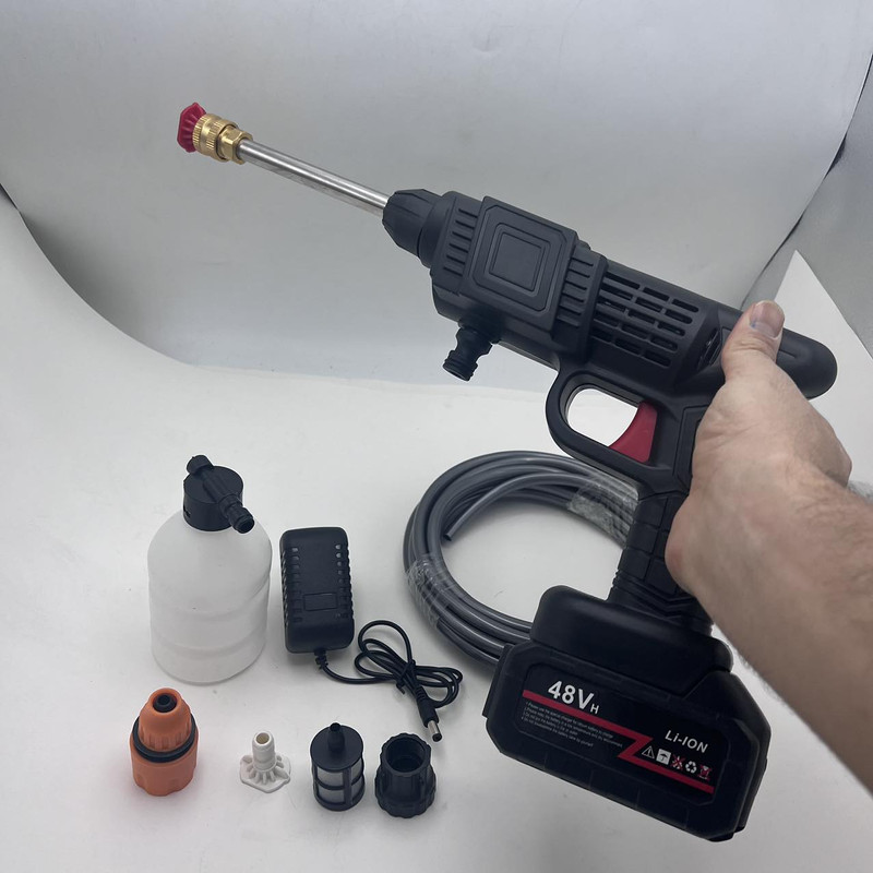 کارواش شارژی خانگی با باطری 48 ولت لیتیومی با قدرت 300 وات است .حسن این دستگاه نسبت به دستگاه های دیگر این است که از سری های برنجی استفاده شده است که نشکن است ودر اثر فشار نمیشکند. حداکثر جریان خروجی سیالات در این کارواش 4 لیتر در دقیقه می باشد و فشار آب در بازه 22 تا 30 بار است. ویژگی کلیدی این کارواش قابلیت تنظیم فشار برای نیازهای مختلف است. از مهم ترین کاربردهای این کارواش می توان به مواردی مثل سمپاشی، تمیزکاری و آبیاری، شستشوی خودرو، پارکینگ، استخر، مبلمان، باغ، دوچرخه و … اشاره کرد. کارواش های شارژی یکی از اقلام ضروری برای در هر خانه به شمار می رود. طراحی این نوع کارواش ها به گونه ای است که بدون نیاز به آب فراوان یا حتی برق می توان از آن استفاده نمود. با استفاده این کارواش می توانید به راحتی و با صرفه جویی در مصرف آب، تنها با یک سطل آب، آبیاری سریع و پرفشاری را در منزل ، باغ ، زمین کشاورزی و … تجربه کنید. . فشار آب این کارواش خانگی در بازه 22 تا 30 بار قرار دارد که ویژگی قابل توجه این کارواش قابلیت تنظیم فشار آن است که می توانید با توجه به نیاز خود و آلودگی محل مورد نظر، آن راتنظیم نمایید. معمولاً فشارهای پایین برای آبیاری گیاهان و فشار بالا برای شستشوی وسایل نقلیه و … مورد استفاده قرار می گیرد. طول پاشش این کارواش تا 5 متر می باشد. باطری های قابل شارژ این کارواش نیز باعث در دسترس بودن همیشگی این کارواش حتی در مکان هایی که به برق دسترسی ندارید شده است.