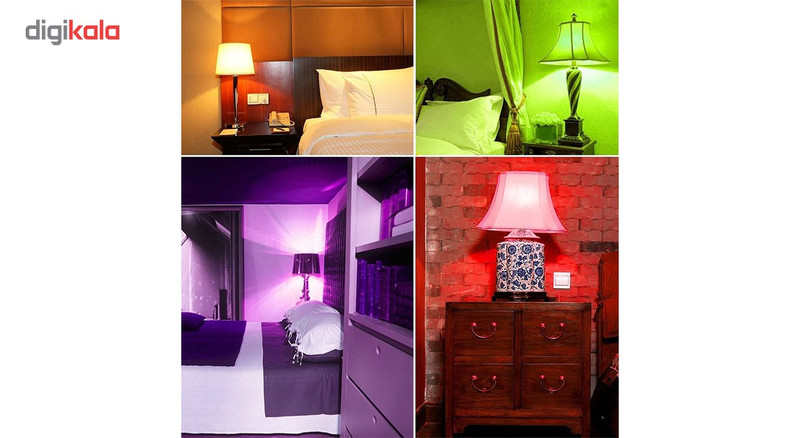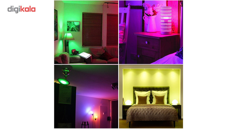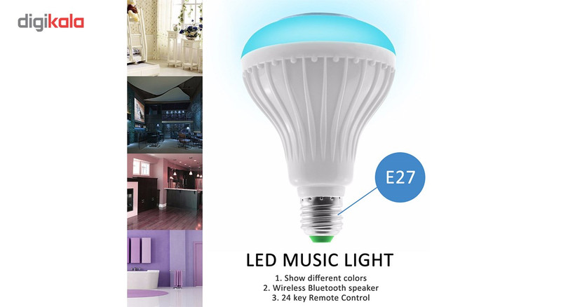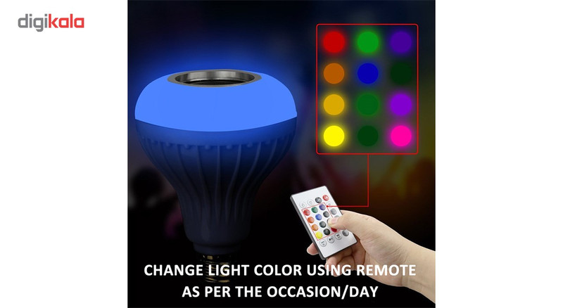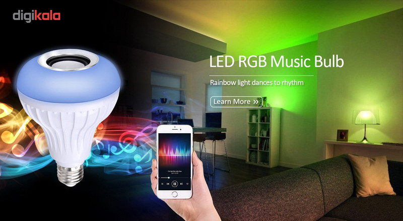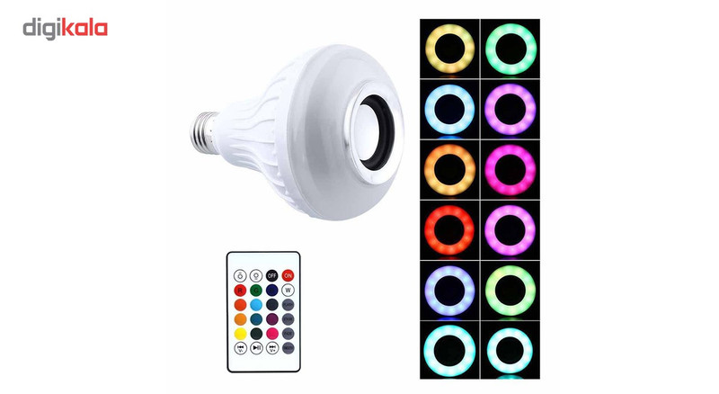 دارای ریموت کنترل برای خاموش/روشن و کنترل از راه دور قابلیت انواع رقص نور قابلیت روشنایی در ۱۲ رنگ مختلف توان مصرفی: تا 5.5 تا 10 وات میزان روشنایی: 450 - 600 لومن مشخصات ولتاژ : 240 ولت توان لامپ : 3 وات منبع نوری : LED طول عمر : 16000 ساعت نوع سرپیچ : E27 یا B22 دارای اسپیکر نسخه بلوتوث : 4.0 دارای استانداردهای C-tick, CE, EMC, FCC, RoHS