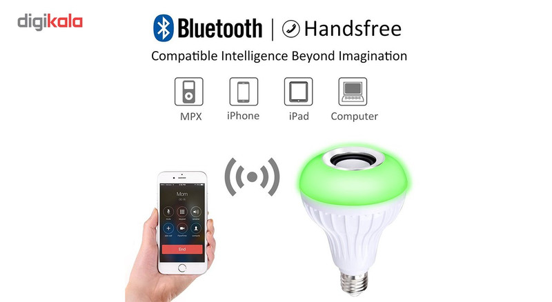 لامپ هوشمند و اسپیکر بلوتوث «دیوایس» ، ترکیبی از یک لامپ معمولی هوشمند (که با سرپیچ به برق متصل میشود) با یک اسپیکر بلوتوث است. با این محصول که از تکنولوژی روز دنیا بهره میبرد میتوان از روشنایی و موزیک در قالب یک لامپ مدرن بهره برد.این محصول علاوه بر کاربرد های یک لامپ معمولی ، قابلیت کنترل میزان روشنایی ، و روشن/خاموش از راه دور (به وسیله ریموت کنترل) ، و قابلیت روشنایی در 12 رنگ مختلف را دارد. همچنین ، اسپیکر بلوتوث آن از کیفیت صدای مطلوبی برخوردار بوده و از قابلیت رقص نور به 3 نوع مختلف هنگام پخش موسیقی نیز پشتیبانی میکند. مدل «Music Bulb» از طریق بلوتوث به گوشی موبایل یا تبلت شما متصل میشود. نصب و استفاده از آن آسان است و مصرف برق در آن هم کم خواهد بود. این لامپ قابلیت کنترل روشنایی و همچنین کنترل و تعویض رنگ را دارد و به سادگی کنترل میشود. طول عمر آن 25000 ساعت است و در برابر افزایش بار و گرما محافظت شده است.لامپ هوشمند و اسپیکر بلوتوث «دیوایس» 137 گرم وزن دارد و ابعاد آن 150 در 150 در 300 میلی متر است.نوع پایهی به کار رفته در این لامپ بصورتی است که با انواع سرپیچهای استاندارد که پایه در آنها E27 (یا B22) باشد، سازگاری خواهد داشت.ولتاژ ورودی در این محصول 220 ولت و ظاهر آن شبیه به لامپهای آویز طراحی شده است. توان اسمی در این مدل از محصولات دیوایس هم 12 وات (9 وات برای روشنایی لامپ LED و 3 وات برای اسپیکر بلوتوث) و توان نوری در این مدل 600 لومن است.