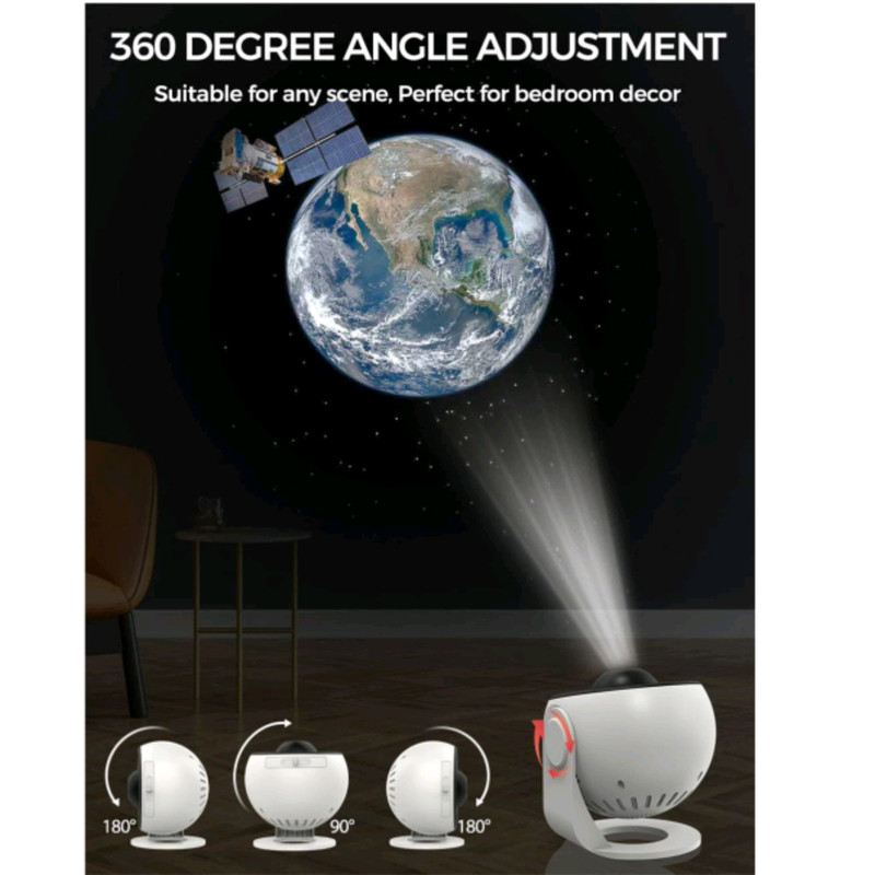 گلکسی لایت سحابی یک هدیه غافلگیرکننده برای خانواده و کودکان، دکوراسیون گرم و رمانتیک برای اتاق خواب، اتاق بازی، سینمای خانگی، مهمانی ها و تعطیلات خواهد بود. بدنه 360 درجه قابل چرخش است، بنابراین صحنه فوق العاده را می توان نه تنها بر روی سقف، بلکه به دیوارها و کف در زوایای مختلف به راحتی نمایش داد. با موتور فوق العاده بی صدا، سرعت چرخش تصویر پیش بینی شده را می توان به آهسته/سریع/توقف تنظیم کرد تا حرکت سیاره را شبیه سازی کند. 5 مجموعه لنز با قابلیت انتقال بالا، منبع نور روشن 6500K، دیسکهای فیلم 4K HD، فوکوس قابل تنظیم. اینها باعث می شوند پروژکتور رنگی زنده تر، نمایش دورتر و واضح تر داشته باشد. برای تنظیم دقیق فوکوس برای یک تصویر واضح در فواصل مختلف، دستگیره را به صورت دستی بچرخانید. تا 5 متر فاصله طرح ریزی و 4 متر قطر پیش بینی شده پشتیبانی می کند. این پروژکتور سیارهنما با 12 دیسک فیلم HD ارائه میشود: منظومه شمسی، زمین و ماهواره، ماه، راه شیری، کهکشان، کهکشان آندرومدا، NGC4302-NGC4298، میدان عمیق هابل، M60-UCD1، سحابی کوه عرفانی، ابر ماژلانی کوچک . پروژکتور فضایی با پیش بینی های واضح از سیاره، کهکشان و سحابی، جهان درخشانی را به شما ارائه می دهد. پروژکتور سیارهنما میتواند هدیهای ایدهآل برای تولد، سالگرد و … باشد. این پروژکتور برای کودکان و بزرگسالان جذاب است و میتواند فضایی آرامشبخش و رویایی را در هر مکانی ایجاد کند.