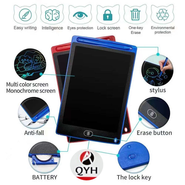 کاغذ دیجیتالی Q Y H ، صفحه نمایش 10 اینچ رنگی نویس . LCD حساس به فشار قلم یا حتی لمس ناخن جهت نوشتن،کشیدن نقاشی،کشیدن نقشه،حسابداری،یادداشت برداشتن و…کاربرد دارد. با طول عمر فوق العاده جایگزین خوبی برای کاغذ،تخته سفید و..شده است. از مواد پلاستیکی با دوام ساخته شده و مناسب جهت استفاده در منزل ،مدارس،ماشین و…می باشد. کاغذ دیجیتالی Q Y H دارای صفحه LCD قابل انعطاف است. فشار خروجی 100-200 g ، مواد LCD و ABS ،مدل باتری سکه ای ،وزن 300g، سایز 17x25x1 سانتی متر می باشد. لازم به ذکر است که در تغییر درجه حرارت سریع بین0-40درجه سیلیسیوس قرار ندهید، همچنین از قرار گرفتن در معرض نور مادون قرمز،گرد وغبار،رطوبت طولانی مدت جلوگیری به عمل آید. توجه داشته باشید که نباید از هر ماده ی شیمیایی جهت پاک کردن کاغذ دیجیتالی Q Y H استفاده نمایید. کاغذ دیجیتال دارای کیفیت های متفاوت می باشد که کاغذ دیجیتال Q Y H دارای بالاترین کیفیت است. این کاغذ دیجیتال رنگی نویس است.